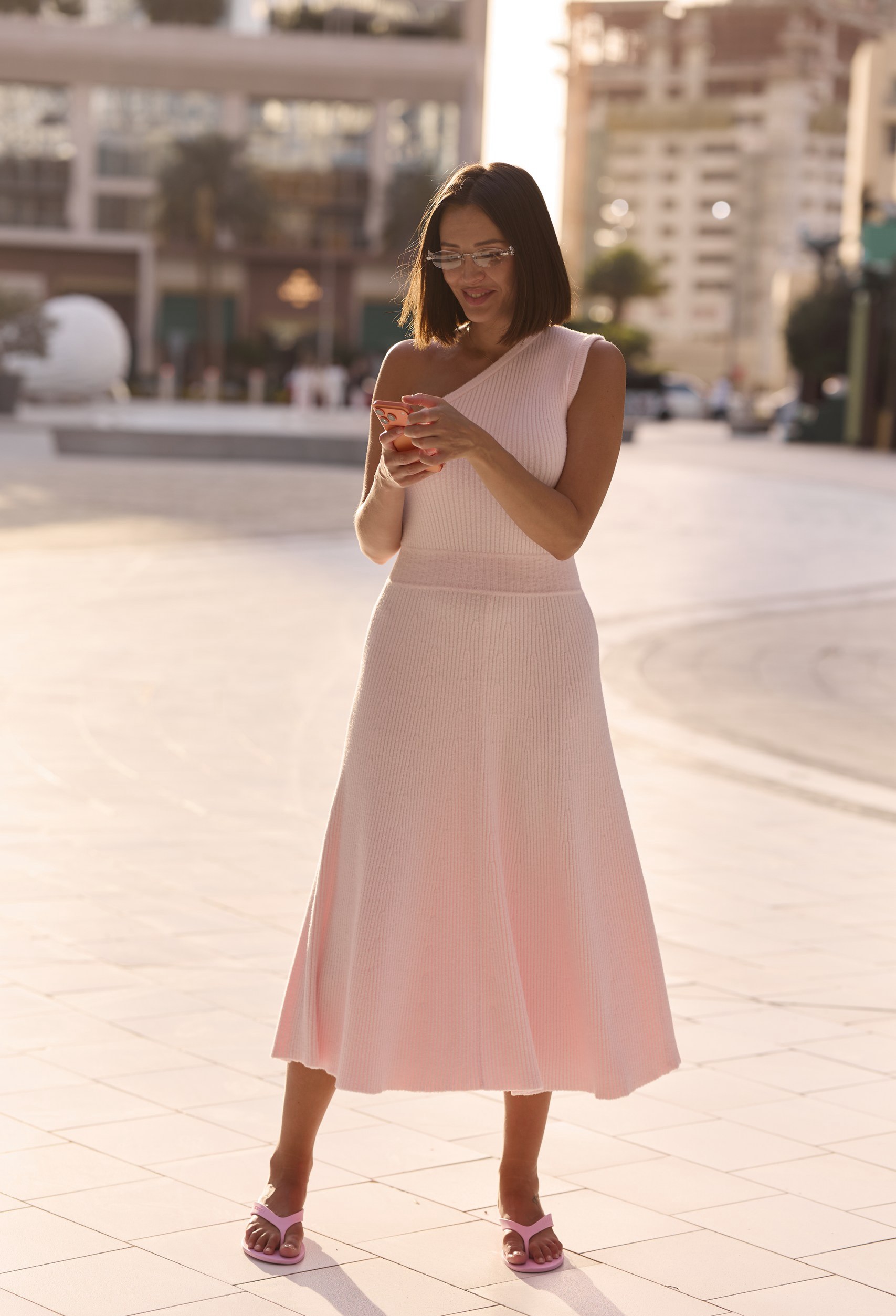 платье миди в нежно розовом цвете